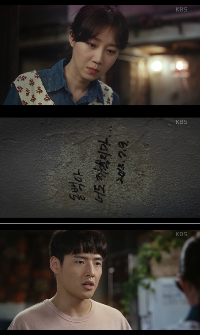 테이블로 교묘하게 가려진 벽에는 연쇄살인범 까불이가 쓴 '동백아. 너도 까불지 마 2013년 7.9.'이라는 글씨가 선명하게 적혀 있었다.