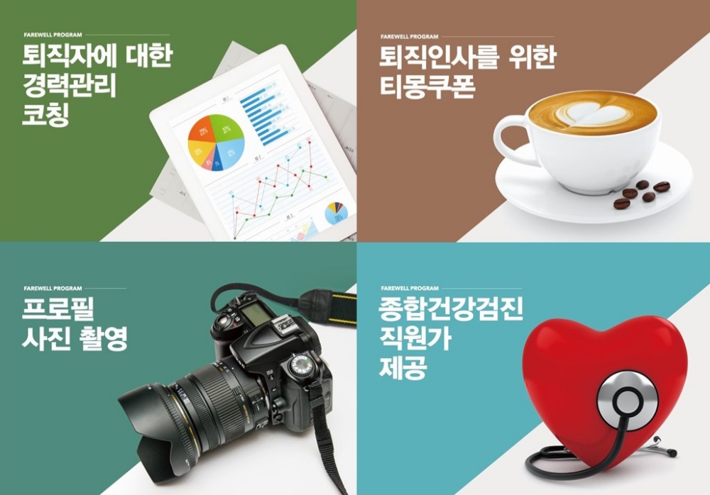퇴직자 케어 프로그램은 개별적으로 퇴사를 하는 과정에서 겪게 되는 불편 사항들을 관리해주고 퇴직 후에도 누릴 수 있는 혜택을 제공한다. 이직 과정에 필요한 체계적인 지원도 하나의 패키지로 만든 퇴직 관련 프로그램이다.