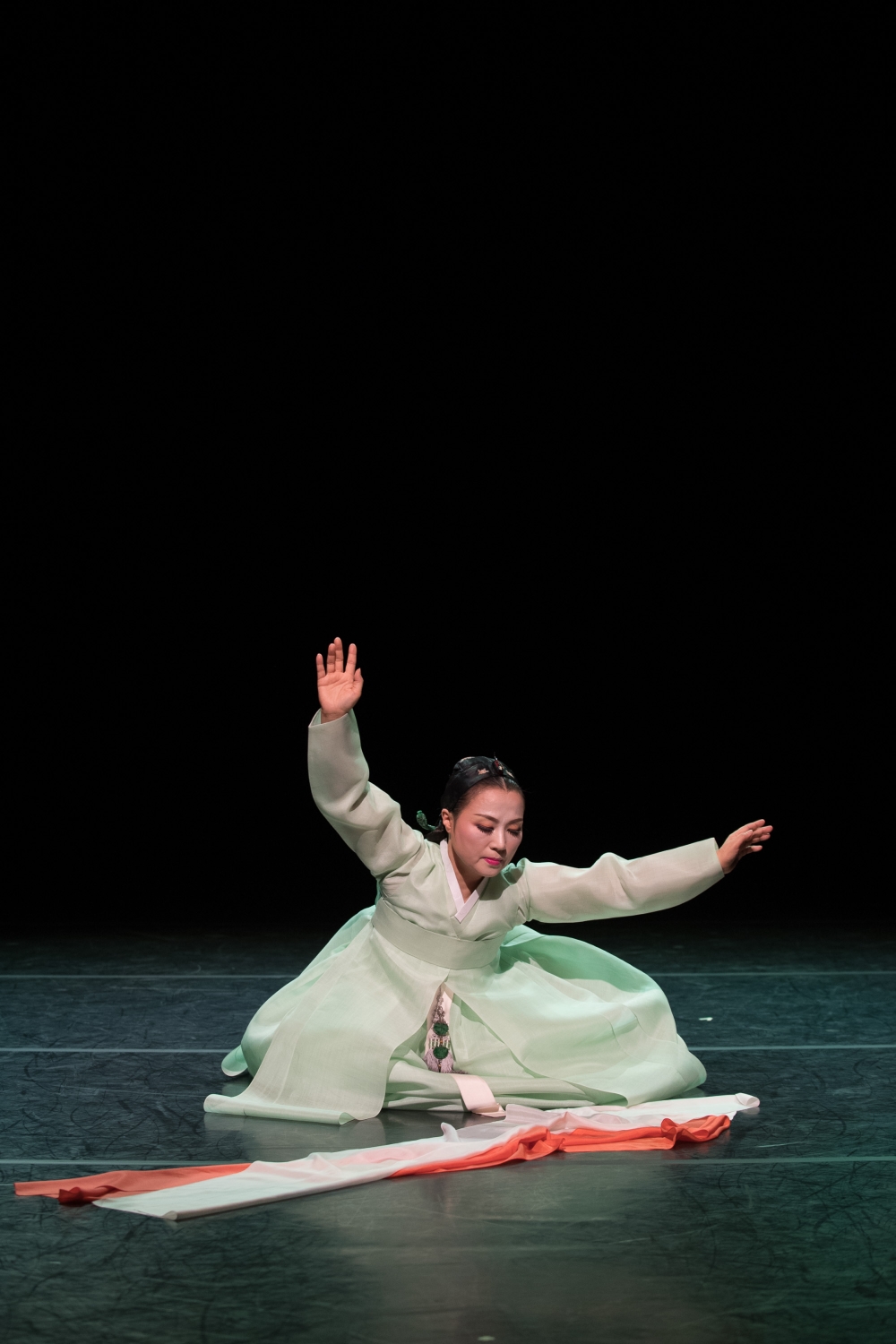 이미지 확대보기무형문화재와 전통춤을 배합한 이 날 공연은 윤혜미(한국전통예술협회 상임이사)의 사회로 이루어졌다. 태풍 링링이 위세를 떨친 탓에 대부분의 관객은 외국인이었고, 영어 해설과 관객과의 대화도 없었다. 작품은 춘앵전, 입춤(살풀이 본), 진주검무, 태평무, 홍애수건춤, 진도북춤으로 구성되었다. 학술적 가치의 춤에 김규미, 송경숙, 백봉선, 이수경, 윤제명, 강레나가 출연하였고, 김정태・하현조가 특별출연했다. 라이브 음악은 무악풍류(대표 김명원)가 맡았다.