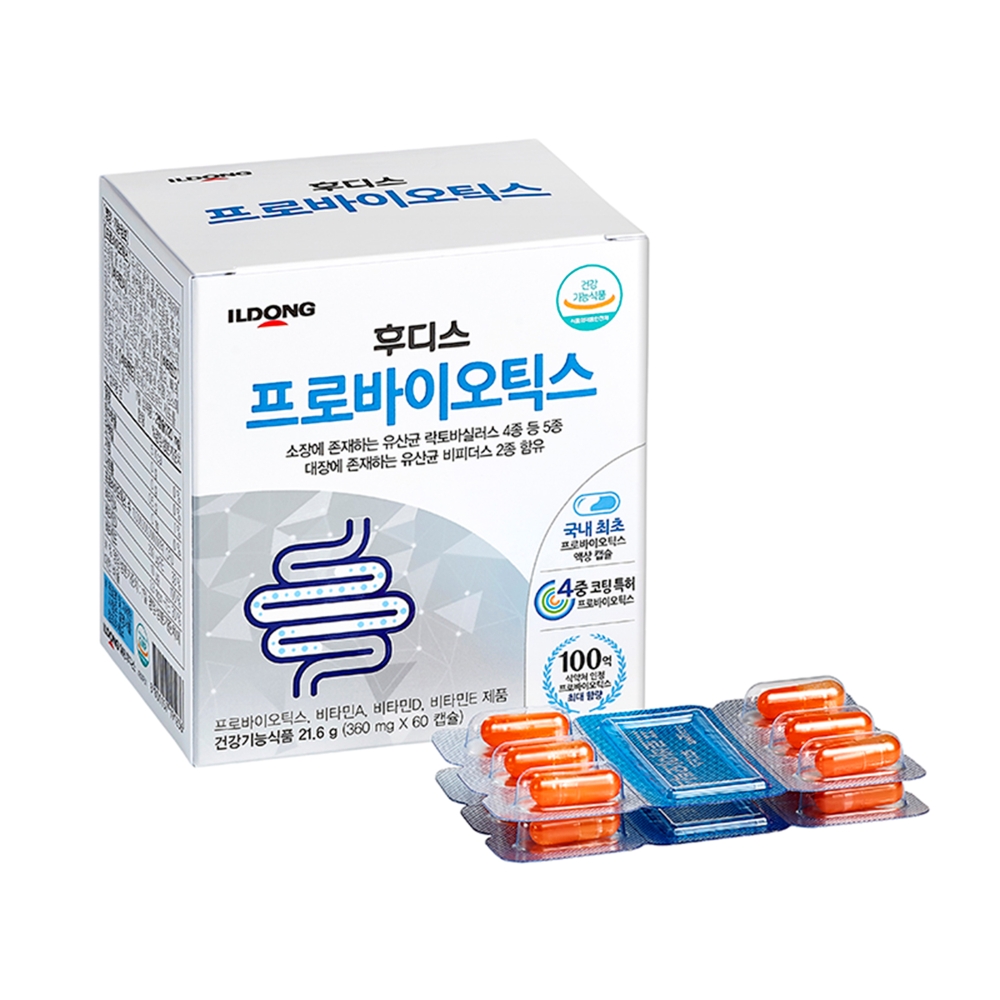 또 식약처가 인정하는 최대 함량치인 100억 마리(2캡슐 기준)의 ‘프로바이오틱스’와 프로바이오틱스의 먹이가 되는 프락토올리고당인 ‘프리바이오틱스’를 같이 담아 유익균의 생육과 활성화에도 더욱 유리하다.