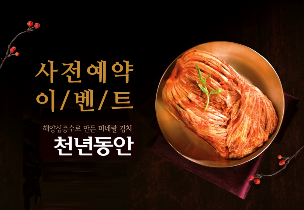 이번 프로모션은 천년동안 김치의 이달 말 출시를 기념해 마련됐다. 해당 기간 강원심층수 고객만족센터나 천년동안 공식 쇼핑몰에서 사전 예약하면 가격 할인 혜택을 받을 수 있다.