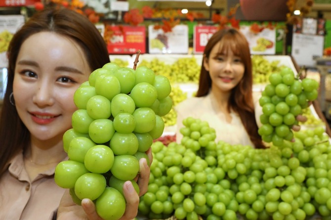 이미지 확대보기롯데마트는 최근 고객들에게 인기 있는 청포도 ‘샤인머스켓’의 주요 국내 산지인 경상북도 영천시와 협약을 맺고 10월 17~23일 ‘영천 샤인 머스켓(1.5㎏/1박스)’을 2만4800원에 판매한다고 밝혔다.