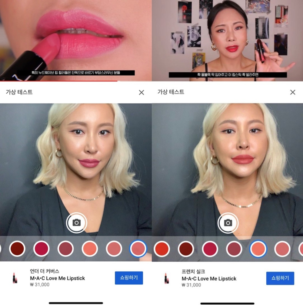 영상에서 사용자는 얼굴에 직접 맥 러브미 립스틱 10개 색상을 적용해볼 수 있으며 제품을 클릭하면 공식 홈페이지로 연결돼 구매도 가능하다.