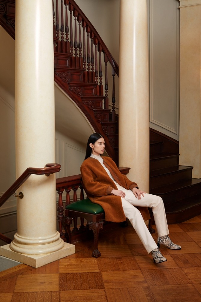 이번 화보는 미국 뉴욕의 맨해튼 어퍼 이스트 사이드(Upper East Side)에 위치한 한 건물에서 촬영됐다. 공간 곳곳의 고풍스러운 분위기와 구호 겨울 시즌 아우터의 세련된 아름다움이 함께 어우러졌다고 업체 측은 설명했다.