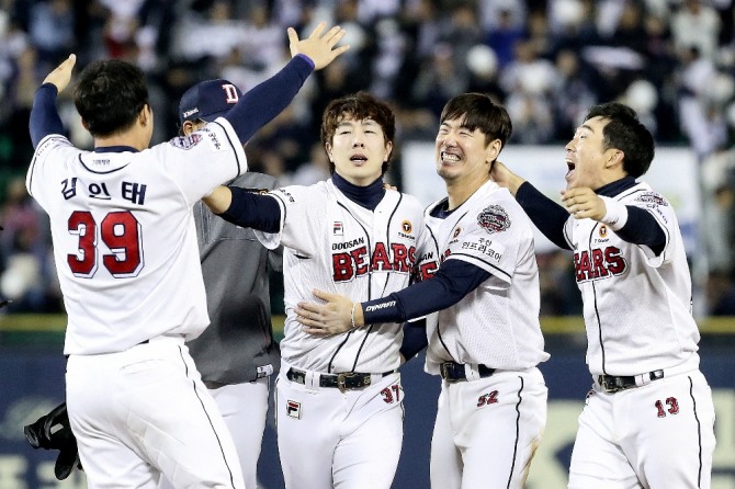 22일 한국시리즈 1차전에서 9회말 오재일에게 끝내기 안타로 승리한 두산은 이틀 연속 끝내기 승리를 거두며 키움을 벼랑 끝으로 몰았다.
