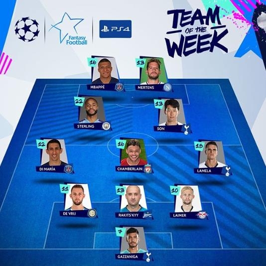 손흥민은 지난 23일 츠르베나 즈베즈다(세르비아)와의 B조 3차전에서 2골을 폭발, 팀의 5-0 대승에 앞장서 13점을 얻어 미드필더 부문에 포함됐다.