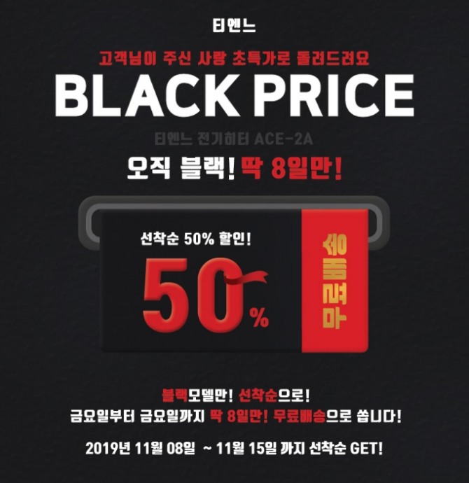 ‘티엔느 카본히터’는 네이버 스토어팜 ‘티엔느샵’에서 블랙프라이스 이벤트에 대한 내용을 확인할 수 있다.