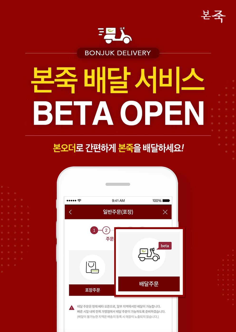 현재 본죽과 본죽&비빔밥 카페 일부 매장에서 시행하고 있으며 계속 확대한다는 계획이다. 배달 가능 매장은 본오더 앱과 공식 홈페이지를 통해 확인할 수 있다.