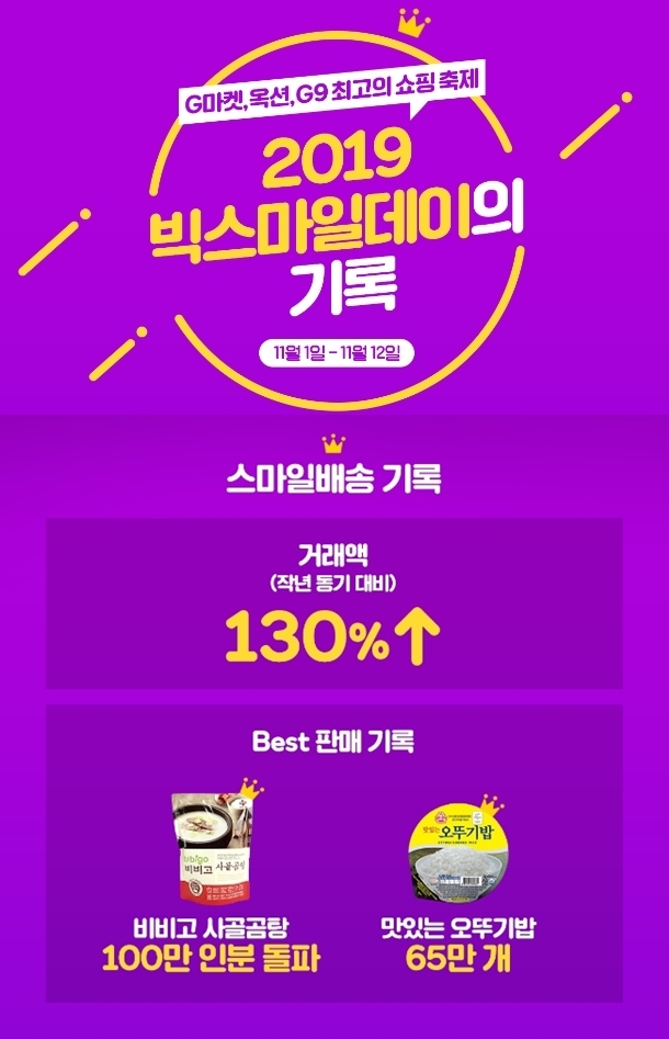 이미지 확대보기이베이코리아가 1~12일 연중 최대 할인 행사 빅스마일데이에서 ‘스마일배송’ 거래액이 전년 동기 대비 130% 늘었다고 18일 밝혔다. 평소와 비교해 하루 평균 2배가량 높은 수치다.