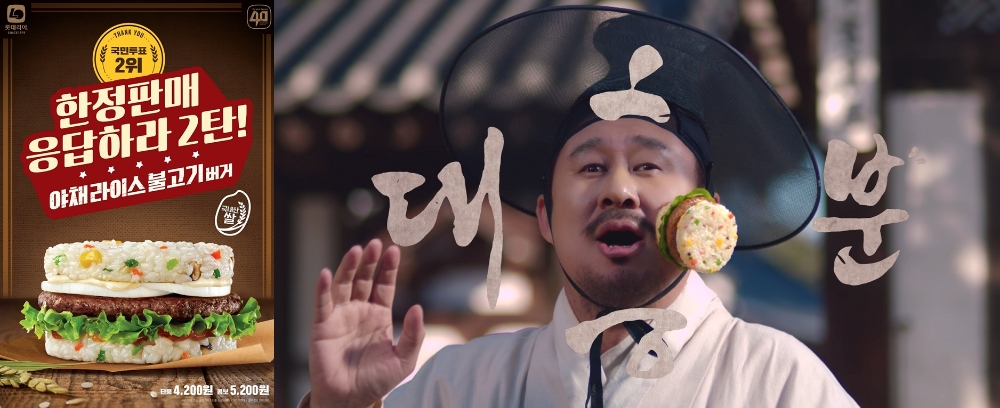 1999년 출시해 큰 인기를 얻은 밥 버거의 원조격인 제품이다. 당시 국내 쌀 소비 촉진에 기여한 공로로 대통령 표창을 받기도 했다. 가격은 단품 4200원, 세트 5200원.