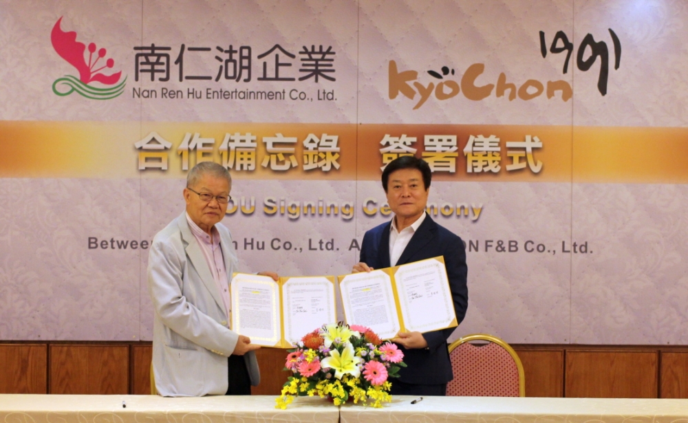교촌치킨을 운영하는 교촌에프앤비㈜는 지난달 26일 대만 만저우 향에 위치한 켄팅턴 리조트(Kentington Resort)에서 현지 기업 난런후 엔터테인먼트사(Nan Ren Hu Entertainment co.,ltd)와 마스터 프랜차이즈(MF) 계약을 위한 사전 양해각서(MOU)를 체결했다.
