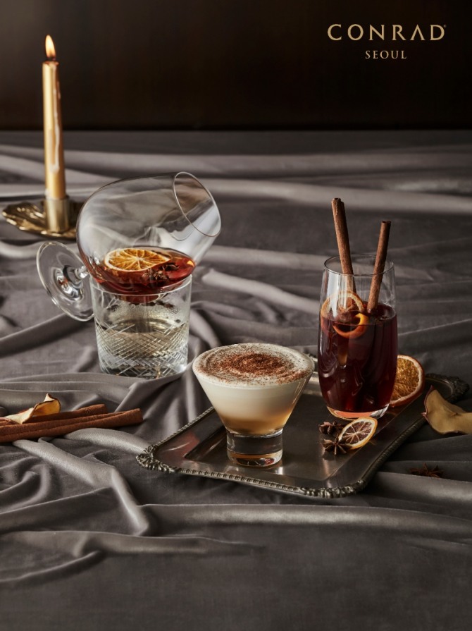 이미지 확대보기먼저 콘래드 서울의 헤드 바텐더는 '윈터 칵테일'을 준비한다. 다양한 베이스의 알코올의 따뜻한 칵테일로 12월 유럽여행을 테마로 총 3개의 맛을 느낄 수 있다.