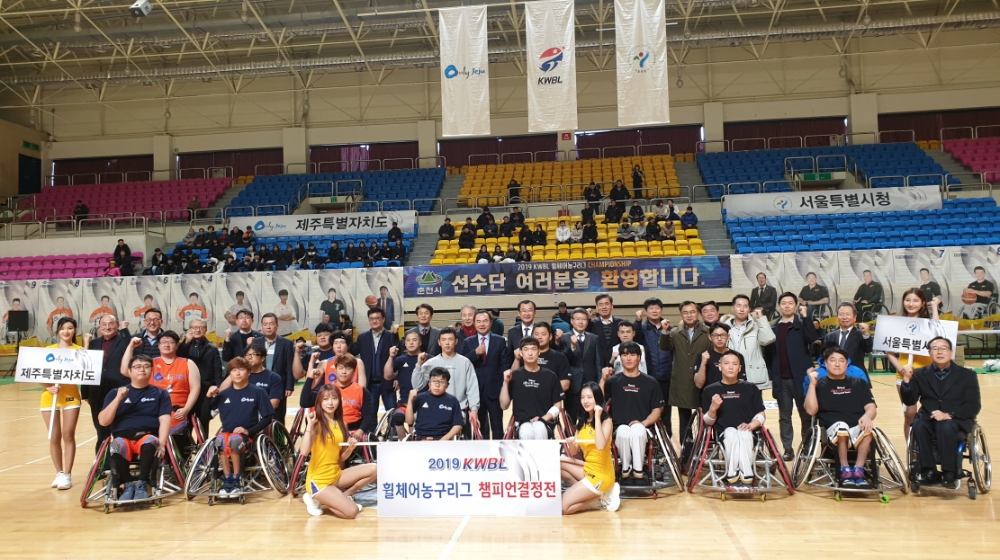 이미지 확대보기2019 KWBL 휠체어농구리그는 국내 5개 구단이 참가해 9월 20일 1차전을 시작으로 22일 ‘챔피언결정전 3차전’을 마지막으로 리그를 마무리했다. 서울특별시청휠체어농구단(이하 서울)은 22일 오후 2시 춘천 호반체육관에서 열린 ‘챔피언결정전 3차전’에서 제주특별자치도휠체어농구단(이하 제주)을 73대 59로 제압하여 결정전 최종 2승 1패를 기록하면서 창단 첫 KWBL 정상에 등극했다. 2015년 리그 출범 원년부터 4연패의 금자탑을 쌓아온 제주는 아쉽게 정상의 자리를 서울에게 물려줬다.