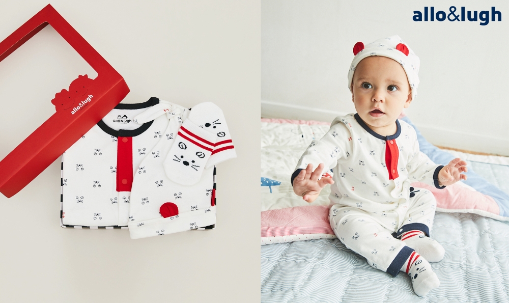 이미지 확대보기알로앤루의 '찍찍 투웨이 우주복 선물세트'는 쥐 캐릭터가 그려져 있는 우주복과 모자, 양말 세트로 구성됐다. 우주복 포켓에는 스트링 끈 장식이 달려있어 쥐 꼬리를 연상케 한다.