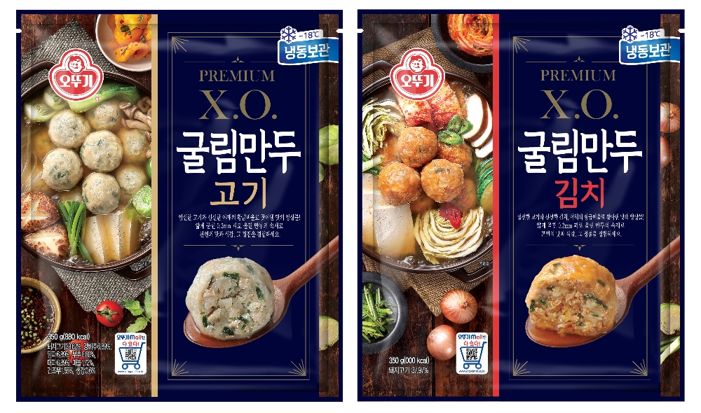 이미지 확대보기오뚜기(대표 이강훈)의 ‘프리미엄 X.O. 만두’에서 ‘굴림만두’ 2종을 최근 출시하고 얇은 피 만두 시장 공략에 나섰다.