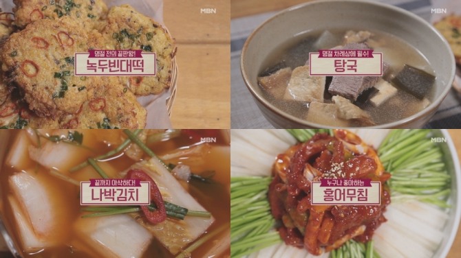 설 밥상 필수 아이템 녹두빈대떡과 탕국, 나박김치와 홍어무침 만드는 법은 다음과 같다.
