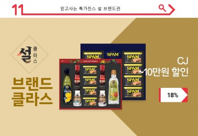 명절선물 베스트셀러인 CJ제일제당의 ‘스팸 선물세트’를 비롯해 비비고 만두, 백설 카놀라유, 햇반, 한뿌리 하루홍삼, BYO 생유산균 등 CJ제일제당의 인기 상품들을 소개한다. 최대 10만 원 할인되는 쿠폰을 제공한다.