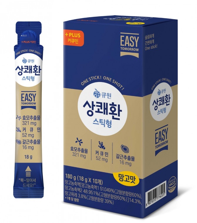 지난해 4월 출시된 상쾌환 스틱형은 망고 과즙을 더해 맛있게 숙취해소를 할 수 있는 스틱형 숙취해소 제품이다.