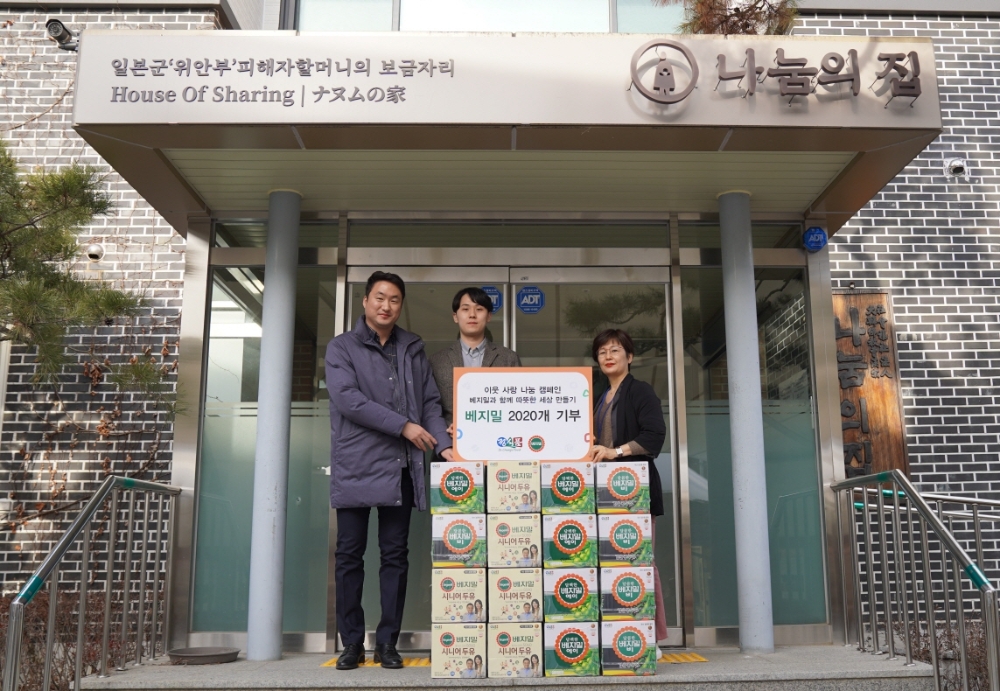지난해 12월 16일부터 올해 1월 10일까지 약 한 달간 진행된 이번 캠페인에는 경자년을 맞아 당초 목표한 2020개를 넘어서 총 2432명이 참여했다. 정식품은 모금된 두유를 포함해 총 2500여 개의 두유를 일본군 위안부 피해 할머니 후원시설인 나눔의 집과 서울 소재 보육원 2곳(영락보린원, 은평천사원)에 전달했다. 이에 지난 8년 동안 나눔의 집과 복지센터의 어르신들과 보육원 아동들에게 기증된 베지밀 개수는 약 1만5000여 개에 이른다.