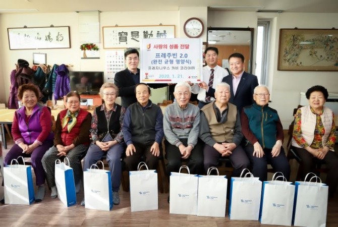 이번 나눔행사는 날씨가 추워지면서 입맛이 떨어지고, 편찮으신 어르신들의 체력 유지를 위해 서울시 중구 광희동 주민센터와 연계해서 준비됐으며 ‘따뜻한 겨울나기’를 통해 경로당에 ‘프레주빈 2.0 카푸치노향’을 전달했다. 이날 행사에는 중구 광희동 주민센터 직원과 프레주빈 관계자, 중구 광희동 어르신 30여명이 등이 참석했다.