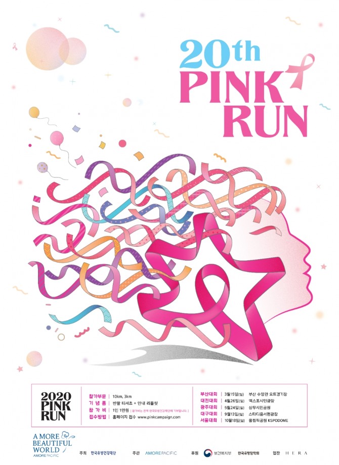 이미지 확대보기올해로 20주년을 맞이한 핑크런은 유방 건강 관리에 대한 유용한 정보를 제공하고, 유방암 조기 검진의 중요성을 알리기 위해 매년 개최되는 러닝 축제다. 아모레퍼시픽이 주관하고 한국유방건강재단이 주최한다. 2001년을 시작으로 지난해까지 약 37만 명이 참여했고, 약 40억 원의 참가 기부금이 산정됐다.