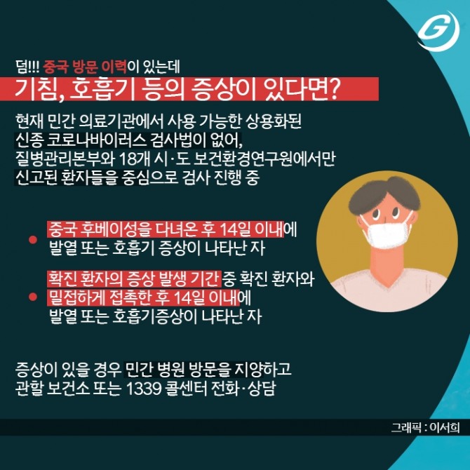 덤! 중국 방문 이력이 있는데 기침, 호흡기 등의 증상이 있다면?
