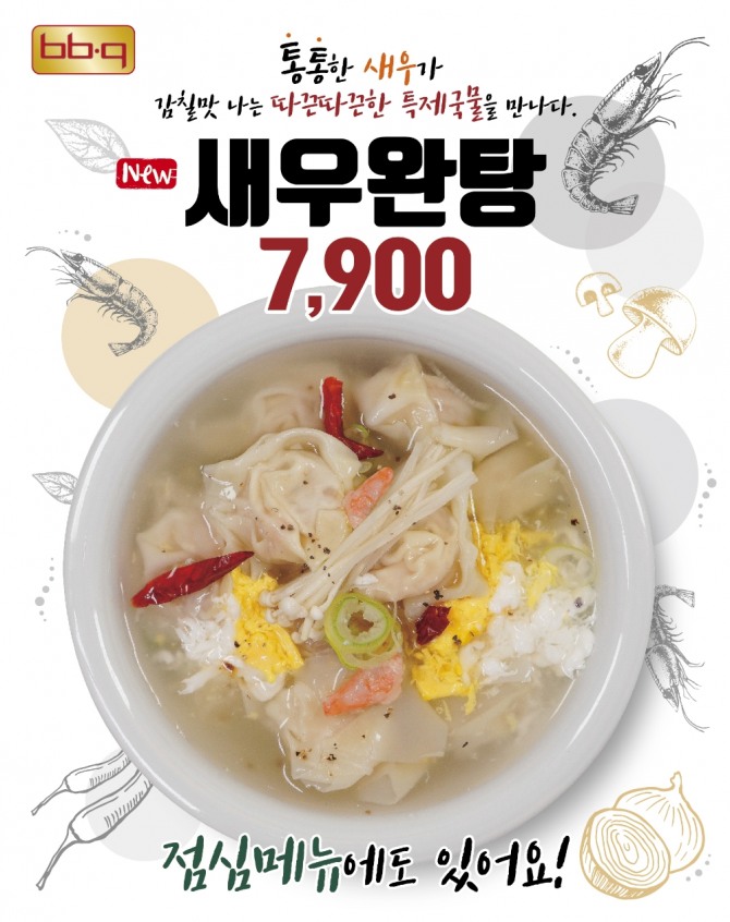 남녀노소가 좋아하는 ‘새우’를 재료로 한 ‘새우완탕’은 탱글탱글한 통새우 식감과 얇은 만두피의 발란스가 BBQ만의 특제 육수와 어우러져 깊고 깔끔한 맛을 내는 것이 특징이다.