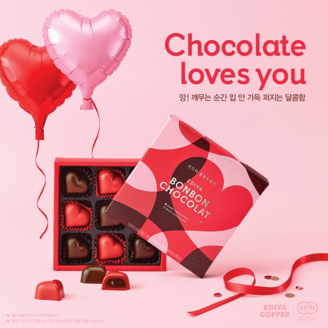 이디야커피는 밸런타인데이를 앞두고 BC카드 QR코드 결제 프로모션도 벌인다. 오는 5일부터 14일까지 이디야커피 매장에서 'BC페이북 QR결제'(BC카드 간편 결제 애플리케이션)를 통해 9900원 이상 결제하는 경우 1인 1회에 한해 3000원 청구 할인이 적용된다.