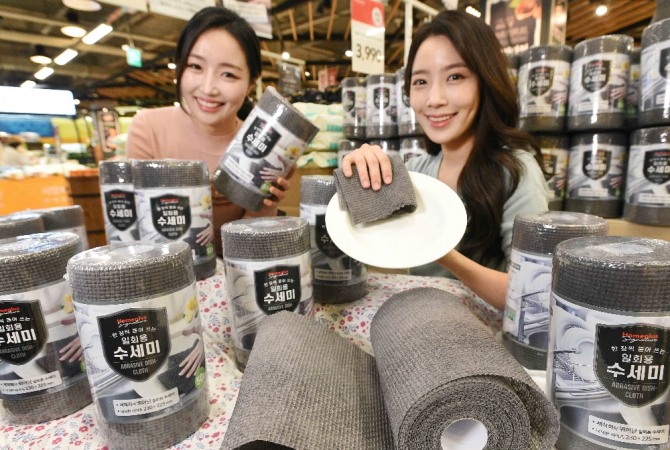 이런 가운데 홈플러스(사장 임일순)가 10일 보다 위생적인 설거지를 할 수 있을 뿐 아니라 생활 속 청소 도구로도 활용 가능한 ‘시그니처 수세미’를 선보였다.
