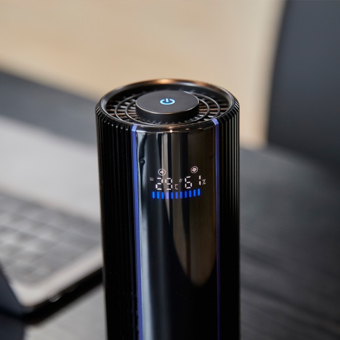 필터를 보호하는 이중 활성탄에서는 프롬데이하이드, 벤젠 등 해로운 냄새도 흡수해 차량뿐 아니라 냄새 제거가 필요한 부엌 등에서도 사용 가능하다. 필터 교체 시기가 되면 차량용 공기청정기 전원부에 빨간색 표시가 되어 미리 알 수 있으며 알림 비프음이 있을 경우 새 필터를 교체해주면 되어 편리하다. 427g의 가벼운 무게에 약 35데시벨 미만의 저소음 공기청정기인 만큼 차량 외 공부방, 사무실, 침실 등에서도 사용할 수 있다.