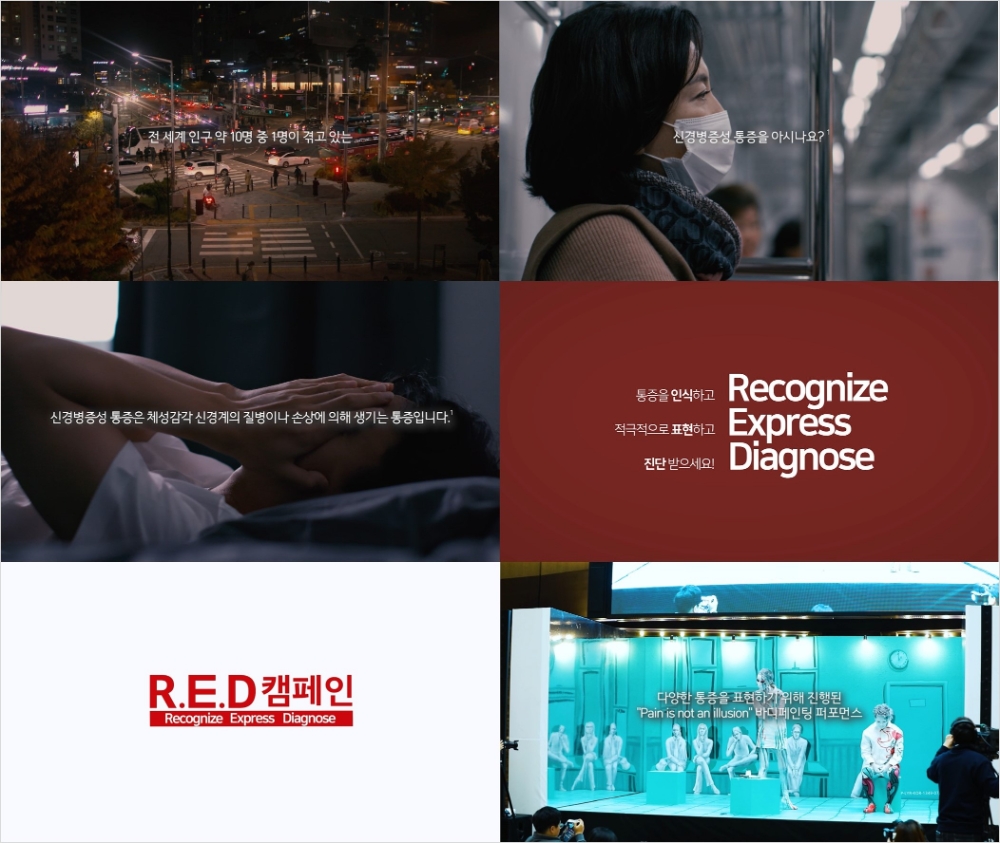 R.E.D(Recognize, Express, Diagnose) 캠페인은 삶의 질을 저하시키는 신경병증성 통증의 인식(Recognize), 표현(Express), 조기 진단(Diagnose)과 치료의 중요성을 알리고 통증의 만성화를 예방하기 위해 마련됐다.