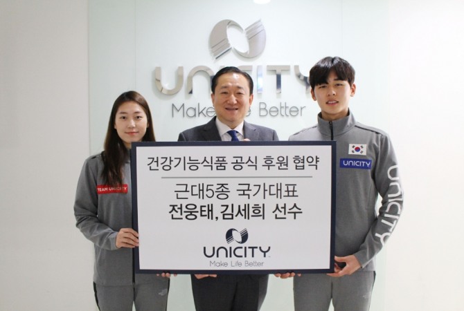 유니시티코리아는 이번 후원계약으로 전웅태·김세희 선수에게 자사의 주력 제품인 '바이오스 라이프 이 에너지'와 '코어 헬스 팩' 등 다양한 제품을 지원한다. 그중 바이오스 라이프 이 에너지는 도핑 테스트 프로그램인 '인폼드-초이스(Informed Choice)'의 안티 도핑 테스트를 통과한 제품이다.