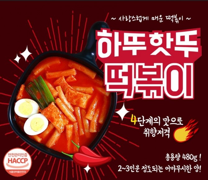 '하뚜핫뚜' 떡볶이는 집에서 간편하게 만들어 먹을 수 있는 냉동조리식품이다. 4단계 맛으로 자신의 취향에 맞게 선택하면 된다.