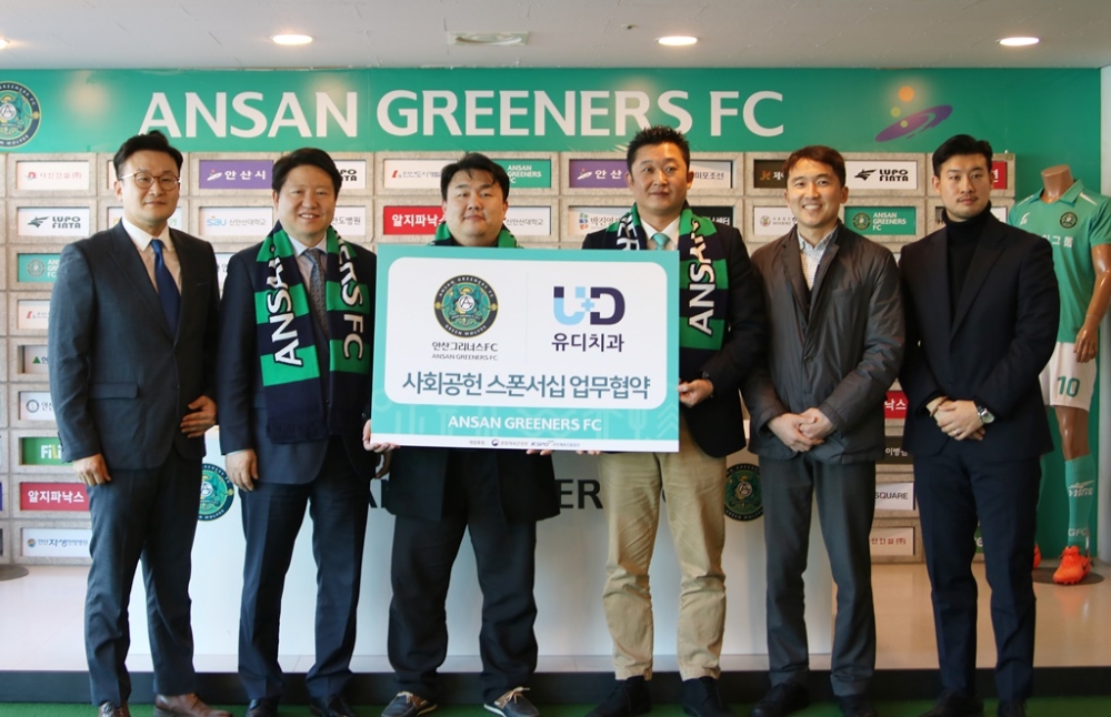 이날 업무 협약식에 참석한 박창희 안산그리너스FC 단장은 “유디치과가 사회공헌활동에 적극 나서는 모습이 안산그리너스FC의 모습과 너무 닮아있으며, 앞으로 유디치과와 하게 활동하면서 더 좋은 시너지 효과를 낼 수 있을 것이라 생각한다”라고 말했다.