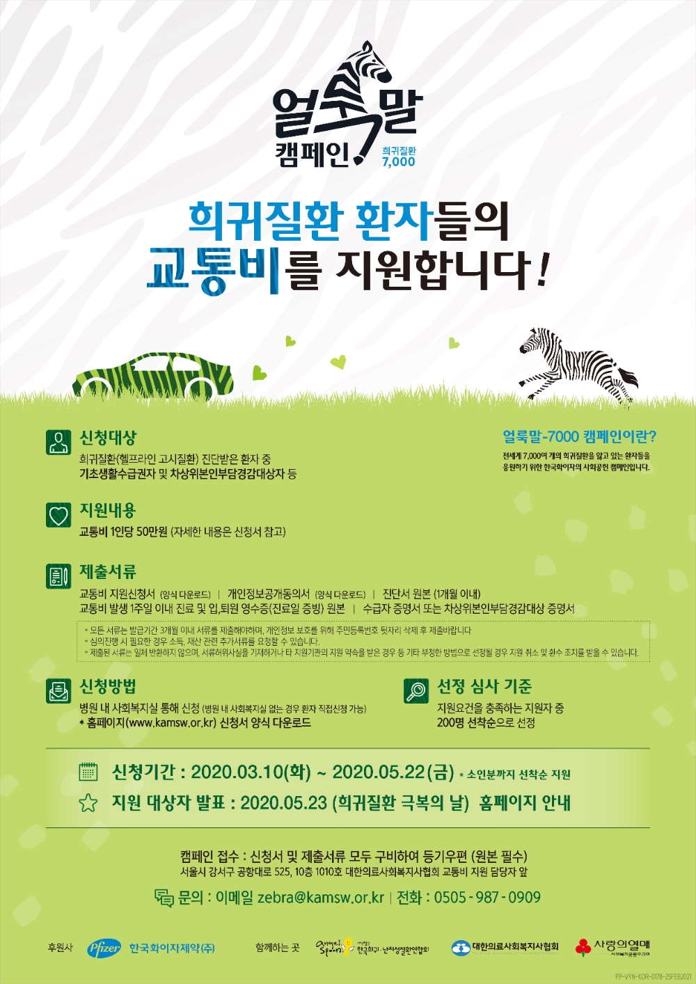 이미 지난달 20일 서울 서대문구에 위치한 한국희귀∙난치성질환연합회 희귀∙난치성질환자 쉼터에서 한국희귀∙난치성질환연합회(회장 신현민), 대한의료사회복지사협회(협회장 김린아), 사회복지공동모금회(회장 예종석)와 함께 캠페인의 일환으로 시행하는 '희귀질환 환자 대상 교통비 지원사업'의 시작을 알리는 기념식을 가졌다.