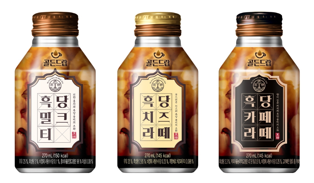 해태htb는 커피 음료에 흑당을 넣은 '골든드랍 흑당카페라떼'도 함께 출시했다. 향이 깊은 커피와 흑당의 달콤함이 어우러져 색다른 풍미를 느낄 수 있다.