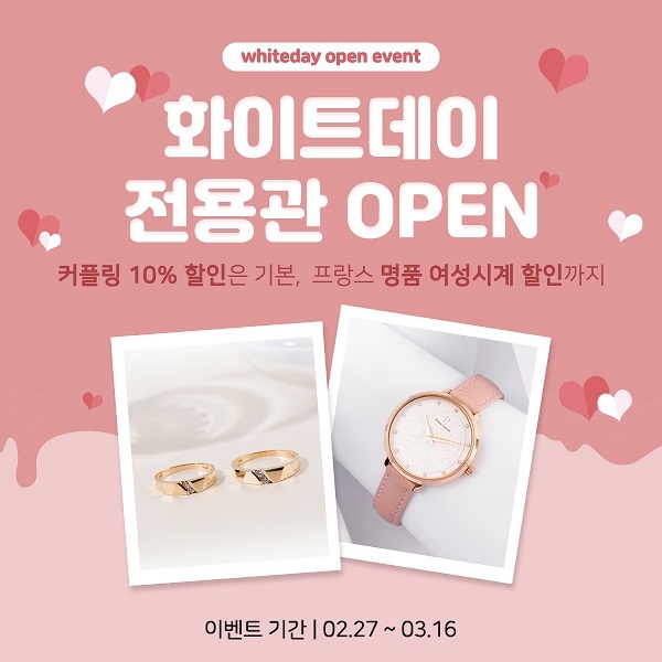 화이트데이 선물을 준비하는 고객 중 가장 관심을 가지고 보는 품목은 단연 커플링이다. 화이트데이 선물 코너에서는 실버 커플링을 2만9800원부터 판매하고 있으며, 미니골드 카카오톡 친구 추가 후 쿠폰 발급 때 실버 커플링과 10K 커플링을 10% 할인된 가격에 구매할 수 있다.