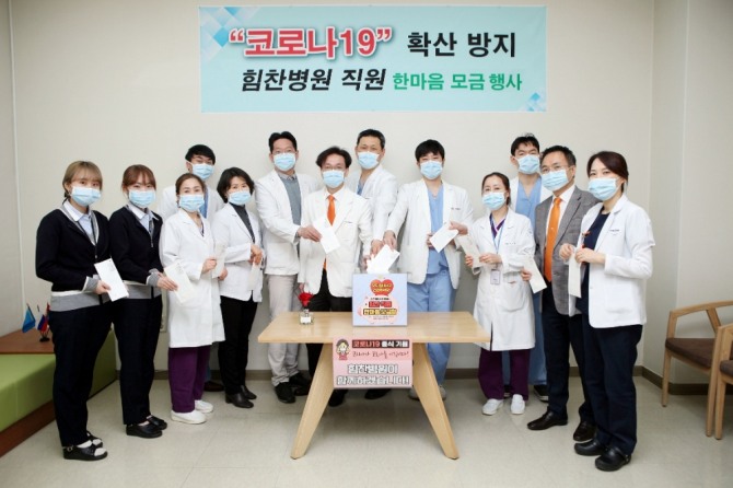이 기부금은 이수찬 힘찬병원 대표원장을 비롯해 강북·목동·부평·인천·부산·창원힘찬병원의 전 임직원이 코로나19 극복 지원을 위해 모금한 것으로 코로나19 확산 방지와 현장 의료진, 피해자 지원을 위해 쓰일 예정이다.