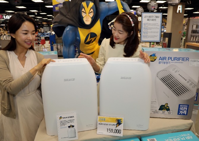 이마트 측은 공기정화 핵심 기술에 집중하고 부가기능을 최소화해 가격을 낮출 수 있었다고 설명했다. '일렉트로맨 공기청정기'는 청정 면적 49㎡(14평)으로 실내오염도를 4단계로 표시해 방안의 오염도를 육안으로 확인할 수 있고, 프리-탈취-집진 3단계 필터로 구성해 공기청정기 본연의 기능에 집중했다.