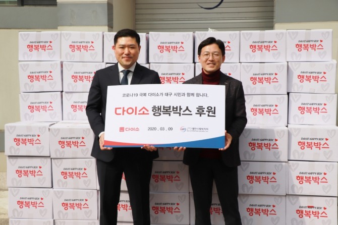 이미지 확대보기다이소는 코로나19 바이러스가 대구시에 확산되면서 생활용품 수급에 어려움을 겪는 저소득층 가정이 많다는 소식을 접하고, 대한사회복지회를 통해 마스크와 위생용품, 주방용품, 세탁용품 등 19가지 품목의 생활필수품으로 구성된 행복박스를 대구지역 저소득층 가정에 전달하게 됐다고 설명했다.