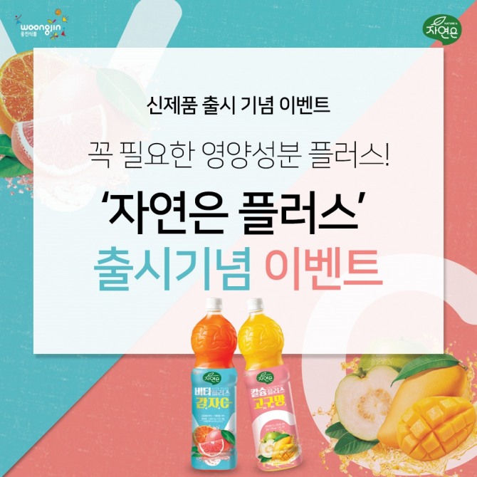 자연은 플러스 2종의 이름을 맞추면 참여 완료된다. 그 밖에도, 해당 이벤트를 개인 SNS로 공유하는 스크랩 이벤트도 함께 진행된다. 추첨을 통해 총 15명에게 신제품 2종을 랜덤 증정한다.