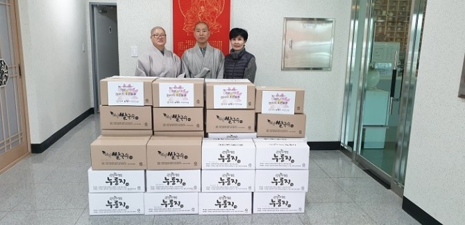 이미지 확대보기대한불교 조계종 청주 월명사의 주지인 지견스님이 경북 경산시 백천사회복지관에 누룽지와 쌀국수를 각각 30박스 전달했다고 16일 밝혔다.