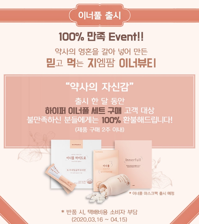 지엠팜 관계자는 "이너풀은 제품에 대한 확실한 자신감으로 나온 지엠팜의 첫 이너뷰티 제품군으로 고객 만족도를 높이기 위해 앞으로도 최선을 다하겠다"고 말했다.