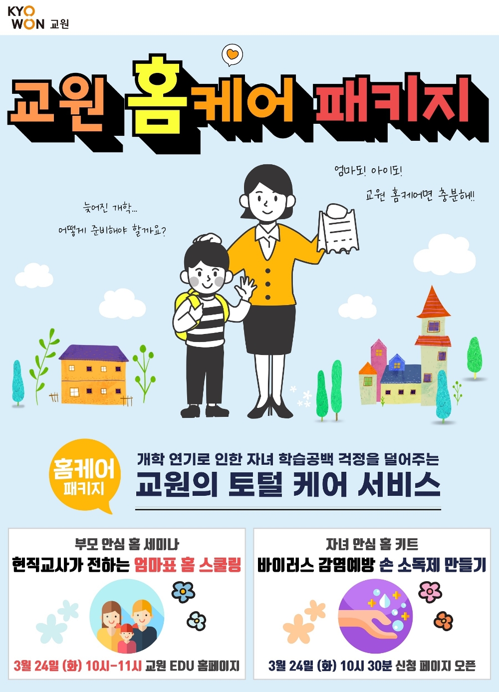 교원그룹 관계자는 "개학이 4월로 연기되는 사상 초유의 사태를 겪고 있는 학부모와 아이를 위해 학습 결손을 최소화 하고 올바른 위생 지식을 바탕으로 건강을 지킬 수 있는 이번 이벤트를 마련했다"고 말했다.