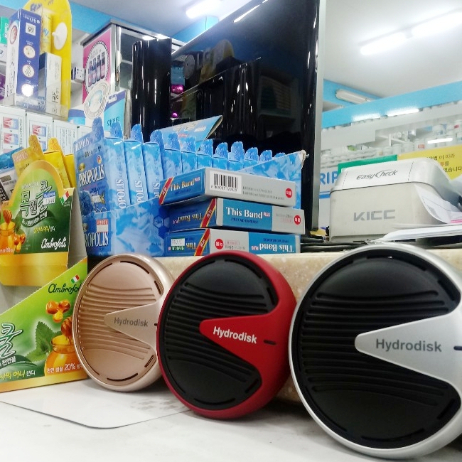 ‘하이드로디스크’는 기존 분무기 형태의 전해수 살균기와 달리 한 번에 다량 살균 소독수를 만들 수 있다는 장점이 있다.
