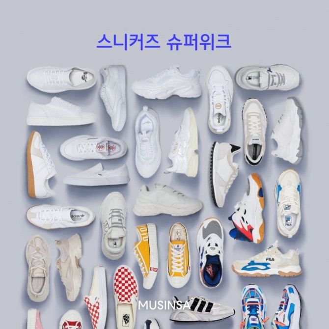 무신사는 행사 기간 하루에 한 브랜드씩 선정해 해당 브랜드의 10% 할인 쿠폰을 지급하는 '매일매일 브랜드 데이'를 운영한다. 아디다스, 리복, 반스, 푸마, 살로몬 등 인기 브랜드 스니커즈를 최대 35% 할인된 특가로 선보인다.