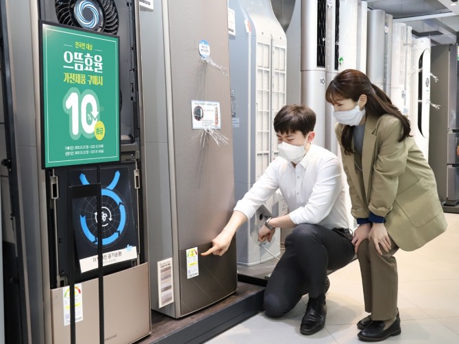 여기에 행사 기간 삼성전자 2020년 신모델 행사모델(81.8m²)을 구매하면 엘포인트(L.POINT)를 최대 70만 포인트까지 추가 지급한다. LG전자 신모델 행사 모델(89.1m²)을 행사 제휴카드로 구매하면 최대 70만 원까지 캐시백 해준다. 특히 4월 3~5일 캐리어 으뜸효율가전(52.8m²)을 구매하면 엘포인트를 최대 10만 포인트까지 준다. 행사는 소비자 반응에 따라 연장할 계획이다.