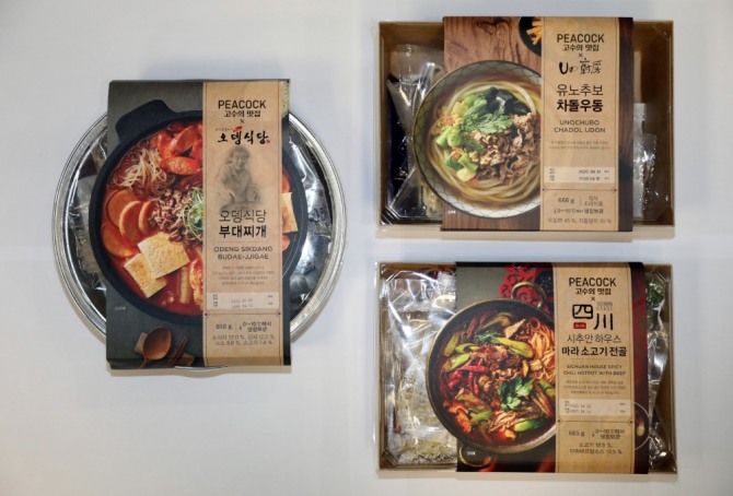 이번 신제품은 ‘피코크 오뎅식당 부대찌개(1만2800원)’ ‘피코크 시추안하우스 마라소고기전골(1만5800원)’ ‘피코크 유노추보 차돌우동(9980원)’ 등 총 3종이다.