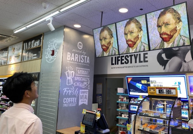 1회 송출 시간은 한 작품당 6초다. 이마트24는 디지털 사이니지 화면에 모션그래픽 효과를 적용해 생동감 있게 명화를 감상할 수 있도록 했다.