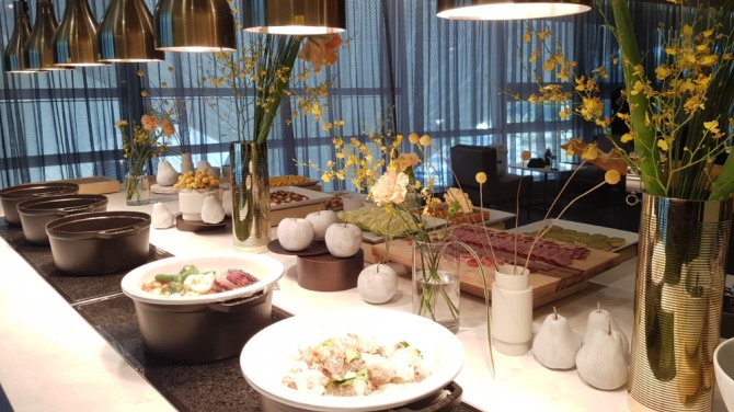 여기에 라운지 이용 시 조식으로는 토스트와 크로아상, 허브 토마토와 견과류를 곁들인 콜드디쉬 메뉴는 물론 소시지, 베이컨 등의 오믈렛 등의 핫디쉬 메뉴와 요거트, 과일 등 다양한 음식을 즐길 수 있다. '해피아워'에는 연어 그라브락스, 게살 스프링롤 등의 콜드디쉬 메뉴와 핫디쉬 메뉴와 함께 하몽까지 맛볼 수 있다.